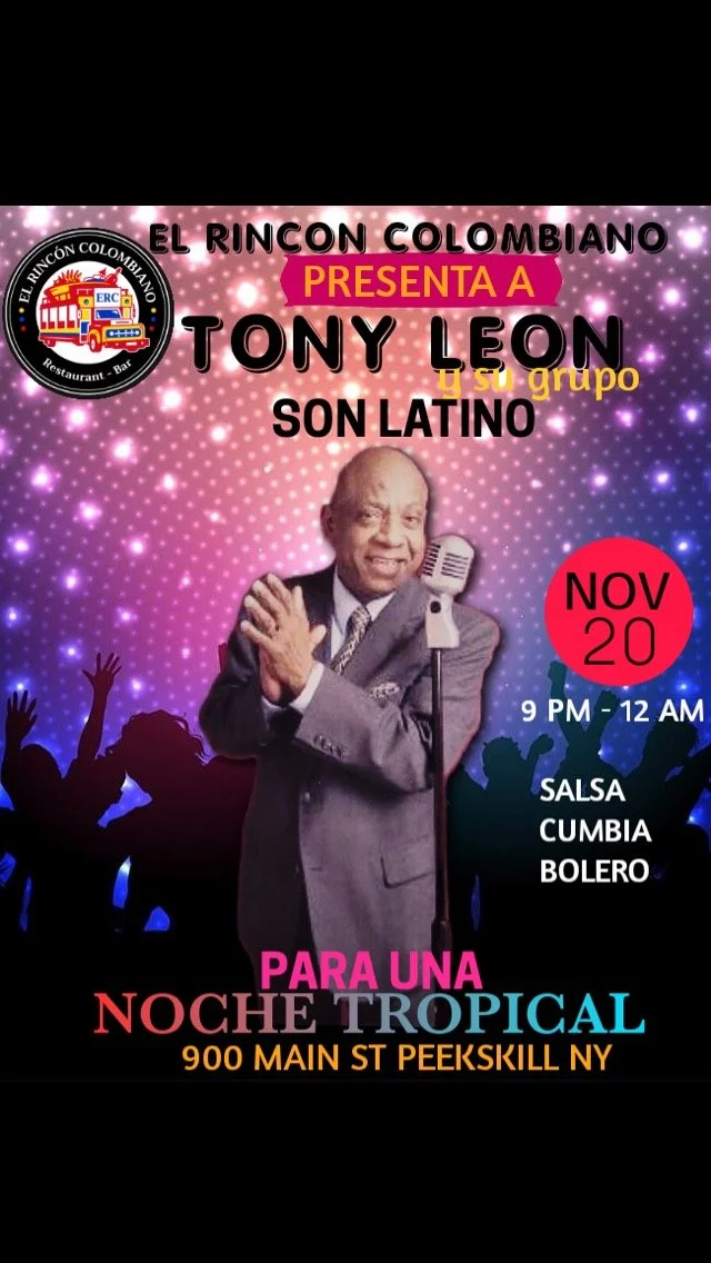 Live music Saturday, November 20, 2021 9:00 PM 21:00 Sunday, November 21, 2021 12:00 AM 00:00 Google Calendar ICS Salsa, Cumbia and BoleroTony Leon y Su Grupo@ Peekskill Central Market900 Main St, Peekskill, NY 10566