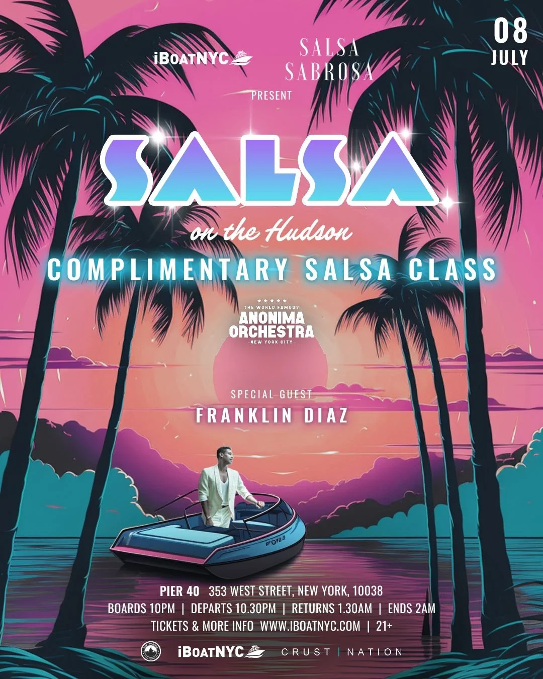 Live music Saturday, July 8, 2023 10:00 PM 22:00 Sunday, July 9, 2023 1:30 AM 01:30 Google Calendar ICS SalsaAnonima OrchestraSalsa on the Hudson, Pier 40353 West St, New York, NY 10014